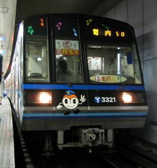 | 30代目(2006/11/19〜2006/12/10) 開港150周年ラッピング電車(あざみ野駅) |
