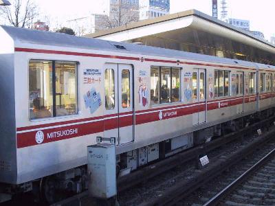 最近流行りの車体広告って、はっきり言ってあまり好きじゃないですね。個人的に。石原都知事の鶴の一声で、東京を走る、バスや電車の車体への全面広告は解禁になってから、しばらくはバスのみだったのが、最近、JRの山手線や地下鉄の銀座線、丸の内線にも車体広告を施した車両が走るようになった。もちろん、鉄道会社にとっては、これは貴重な収入源になるわけだし、頭から反対するつもりは毛頭ないし、車体を使った広告は特に都区内の場合は多くの人の目にとまり、広告効果も絶大なものであろう。しかし、一応は街の美観を損なわないような広告に限るというような"あいまい”な制限がついている。確かに、美観を損なわないものであればいいのかもしれないが、美的センスのすぐれているのはあまりないように思える。車体広告が解禁になる前は、鉄道事業の関連事項であれば、認められていたわけだが、例としては、東急の田園都市線の8637Fの東急ケーブルTV号(現在のITS COM)がそれである。この列車は前面の赤帯を青帯に変更して先頭車の側面にはシャボン玉模様を配して遊び心が感じられ、乗る人間にとっても、楽しいものであった。最近のものでも、江ノ